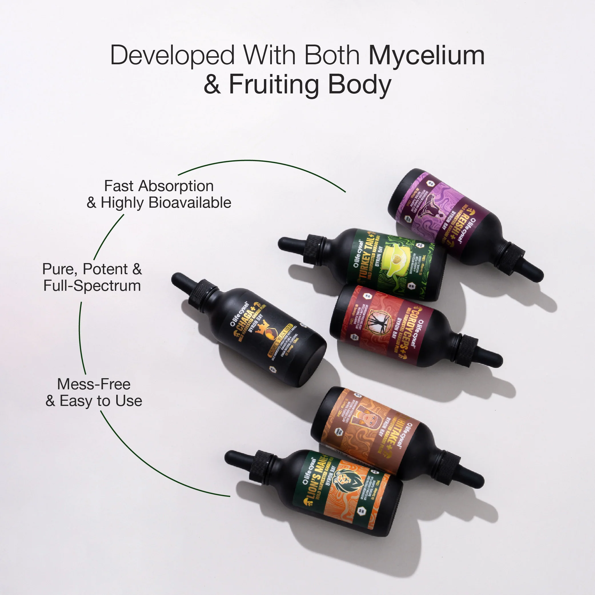 Upgrade your wellness routine with the complete collection — all six of our mushroom extracts.